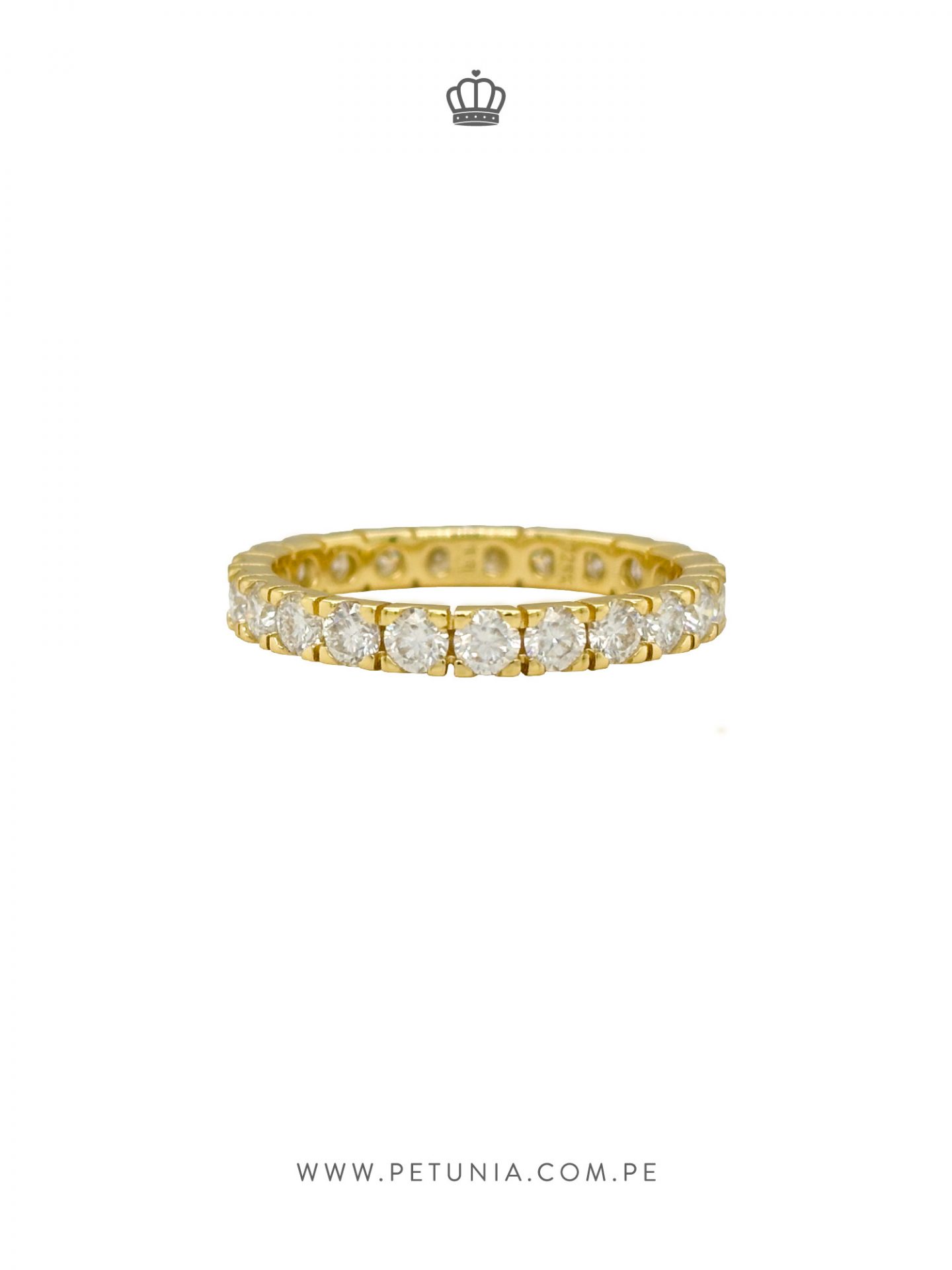 Anillo hecho de plata 925 con baño de oro 18k, estilo rivier con full moissanitas. Este diseño resalta la belleza de cada piedra, creando un efecto luminoso que captará todas las miradas. ¡Haz que cada momento brille!