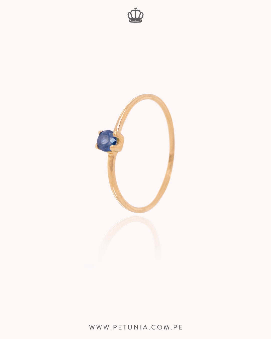 Anillo de oro amarillo 18k destacando por su brillo cálido y atemporal. En el centro lleva una piedra de safiro natural de 0.30 ct
