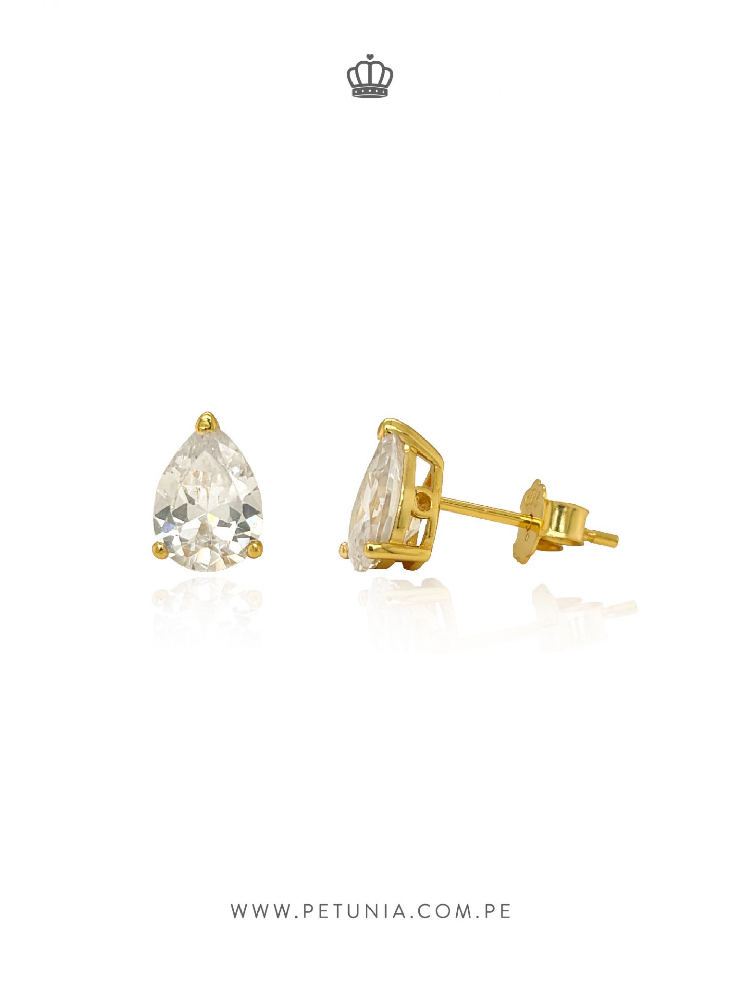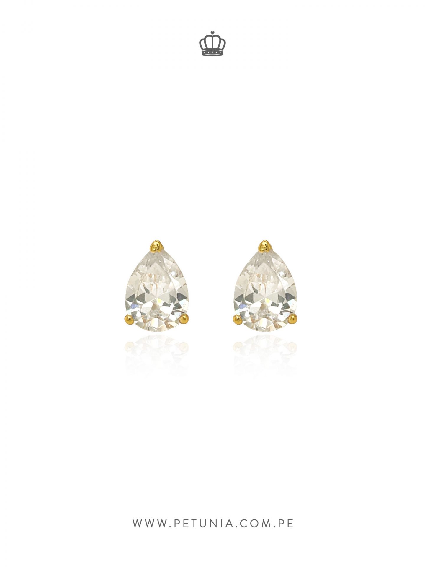 Aretes de plata 925 con baño de oro 18k con un cristal color blanco en forma de gota. ¡El toque de arte y elegancia que tus looks necesitan!