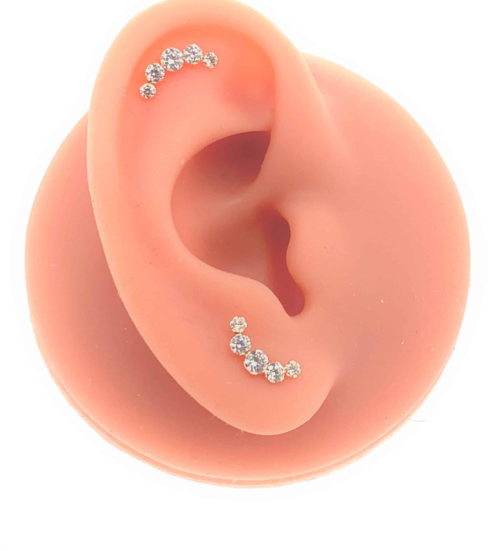 Aretes de oro italiano 14k en forma de media luna con 5 cristales incrustados. Tiene broche clásico, estilo mariposa.