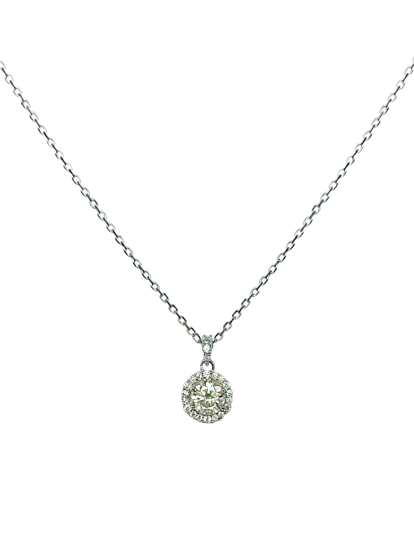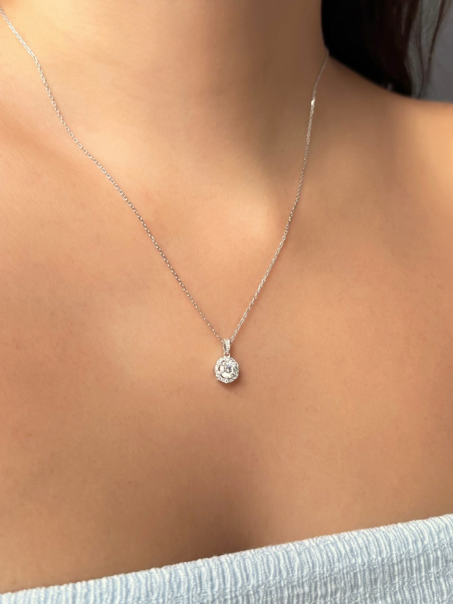 Cadena hecha en plata 925, en forma de roseta circular con una moissanita central y al rededor. Clásicas y elegantes, esencial en tu joyero.