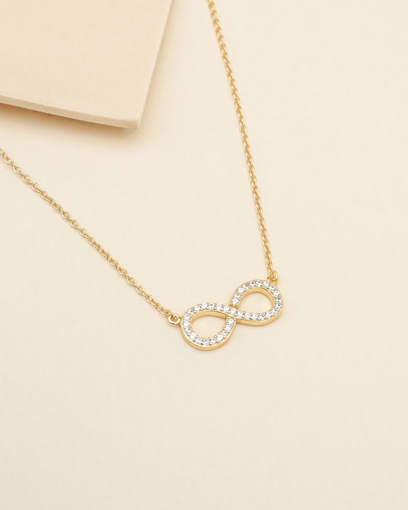 Cadena de plata bañada en oro con charm de infinito con apliques de cristales.