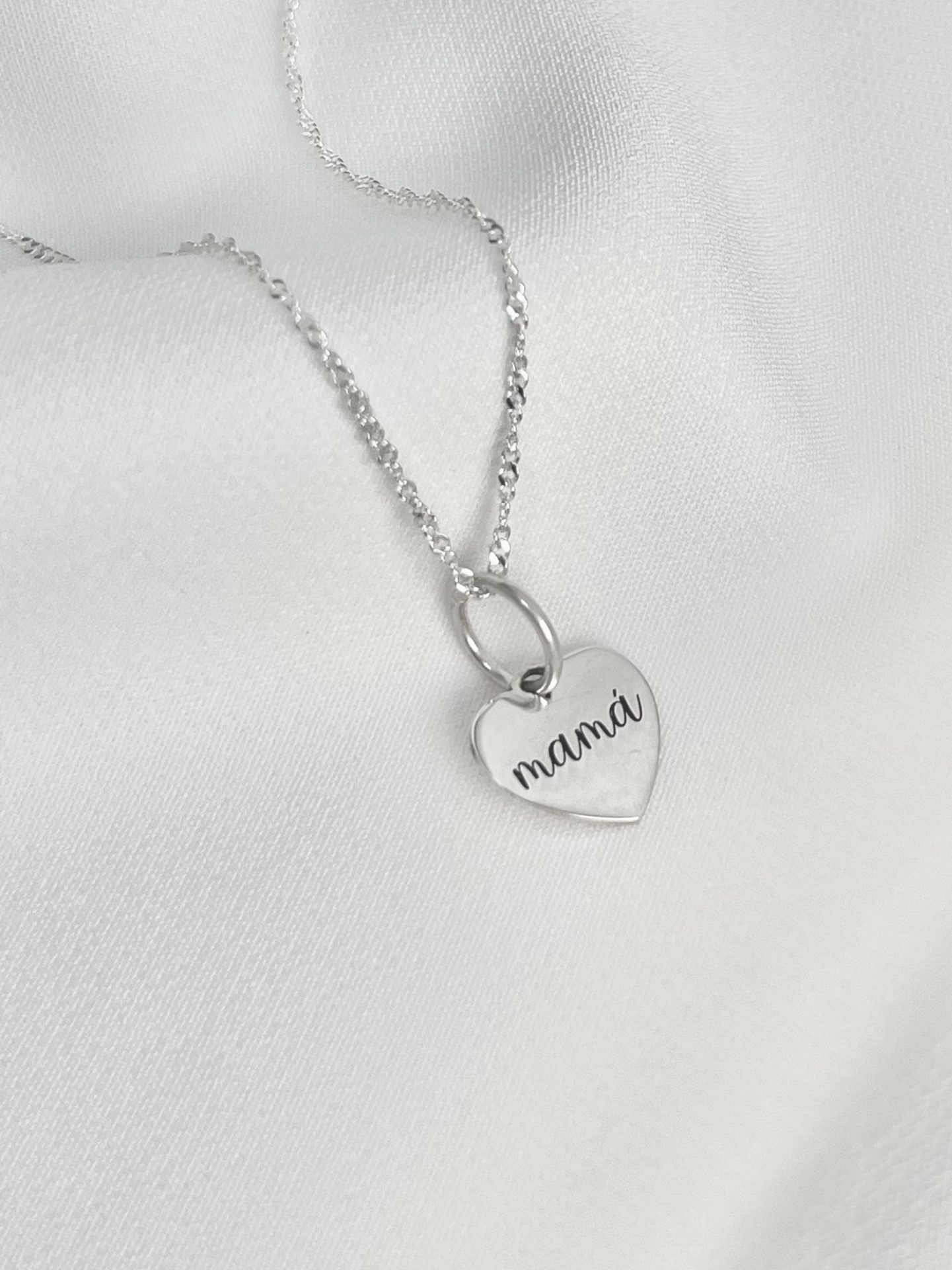 Cadena de plata 925 con dije en forma de corazon con la palabra mamá. Regala una joya eterna, especial y significativa. ¡Seguro que le encantará!
