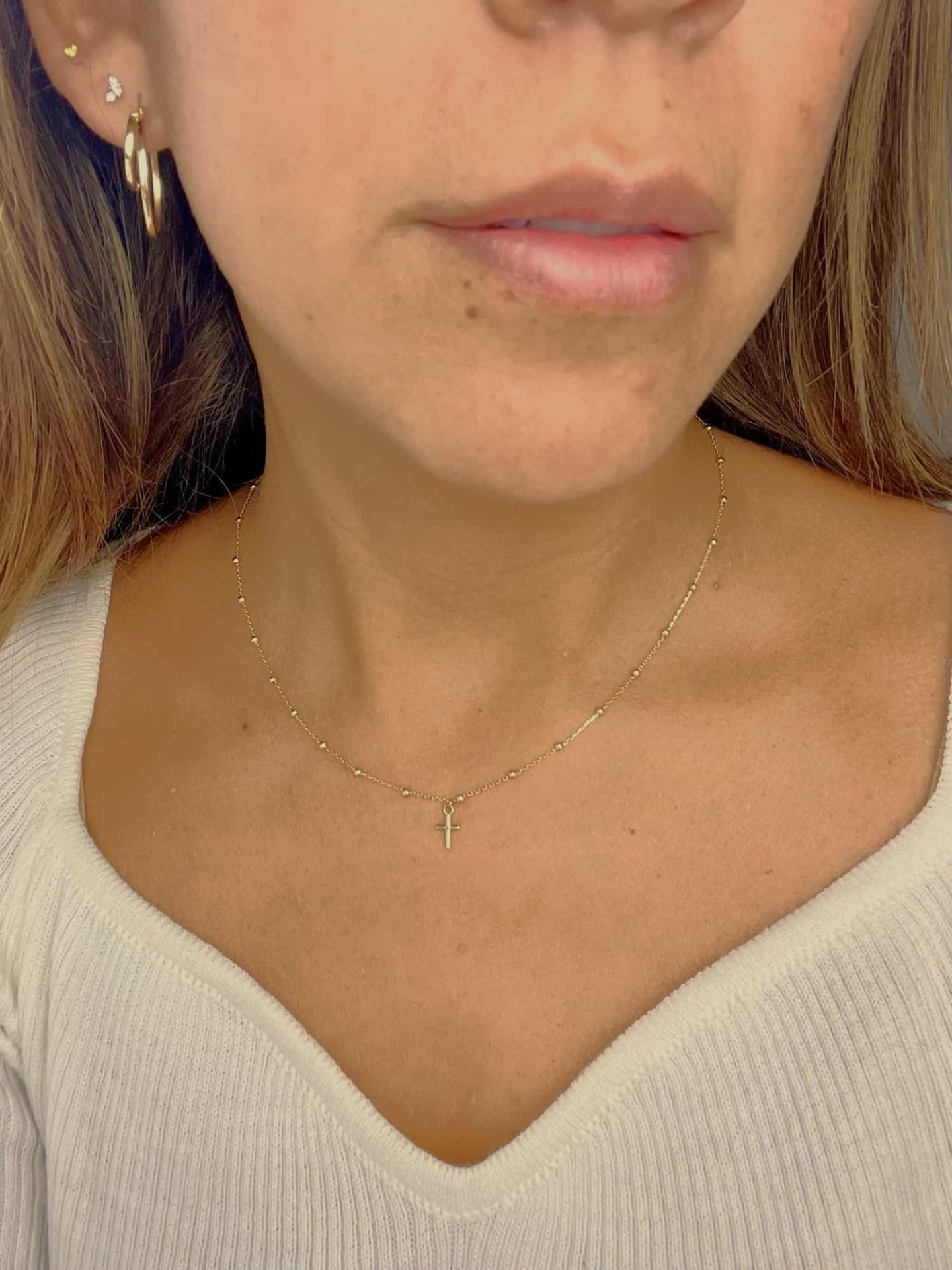 Chocker de oro italiano 14k con beads y charm en forma de cruz mini.