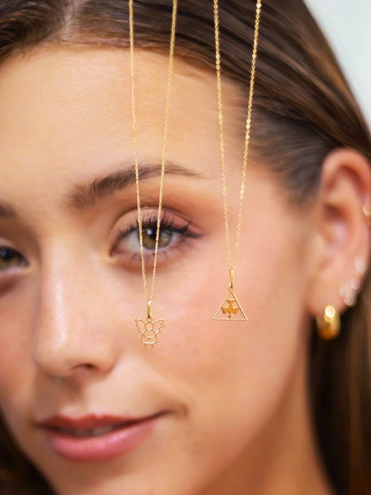 Charm en forma de ángel en oro 18k, representa la protección espiritual y amor puro.