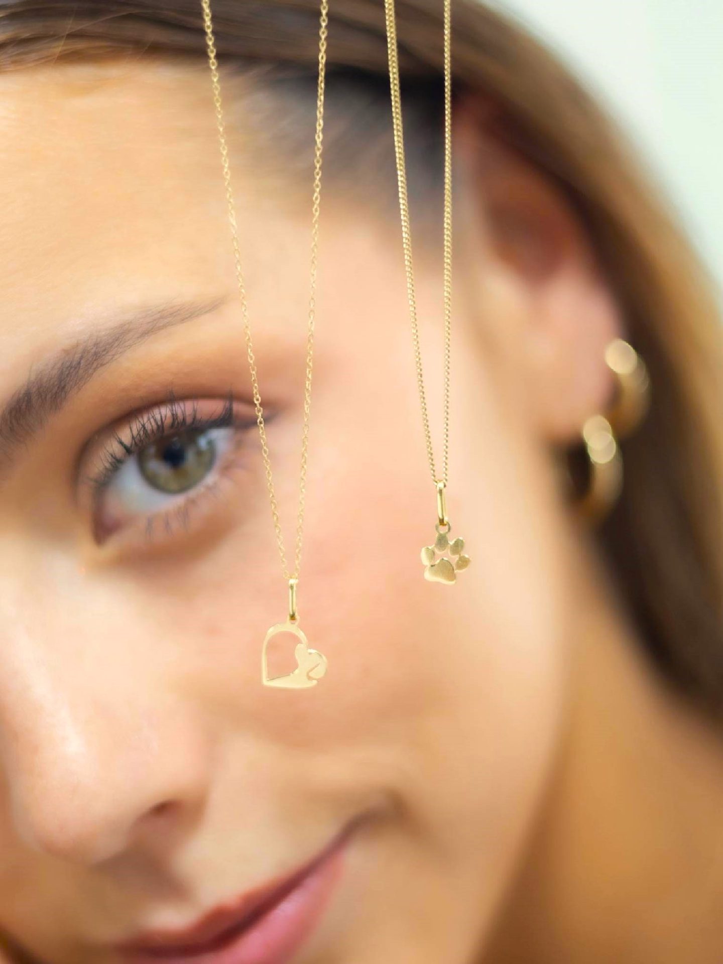 Dije de oro 18k en forma de huella de tu mascota favorita. Ligero, delicado y sutil.