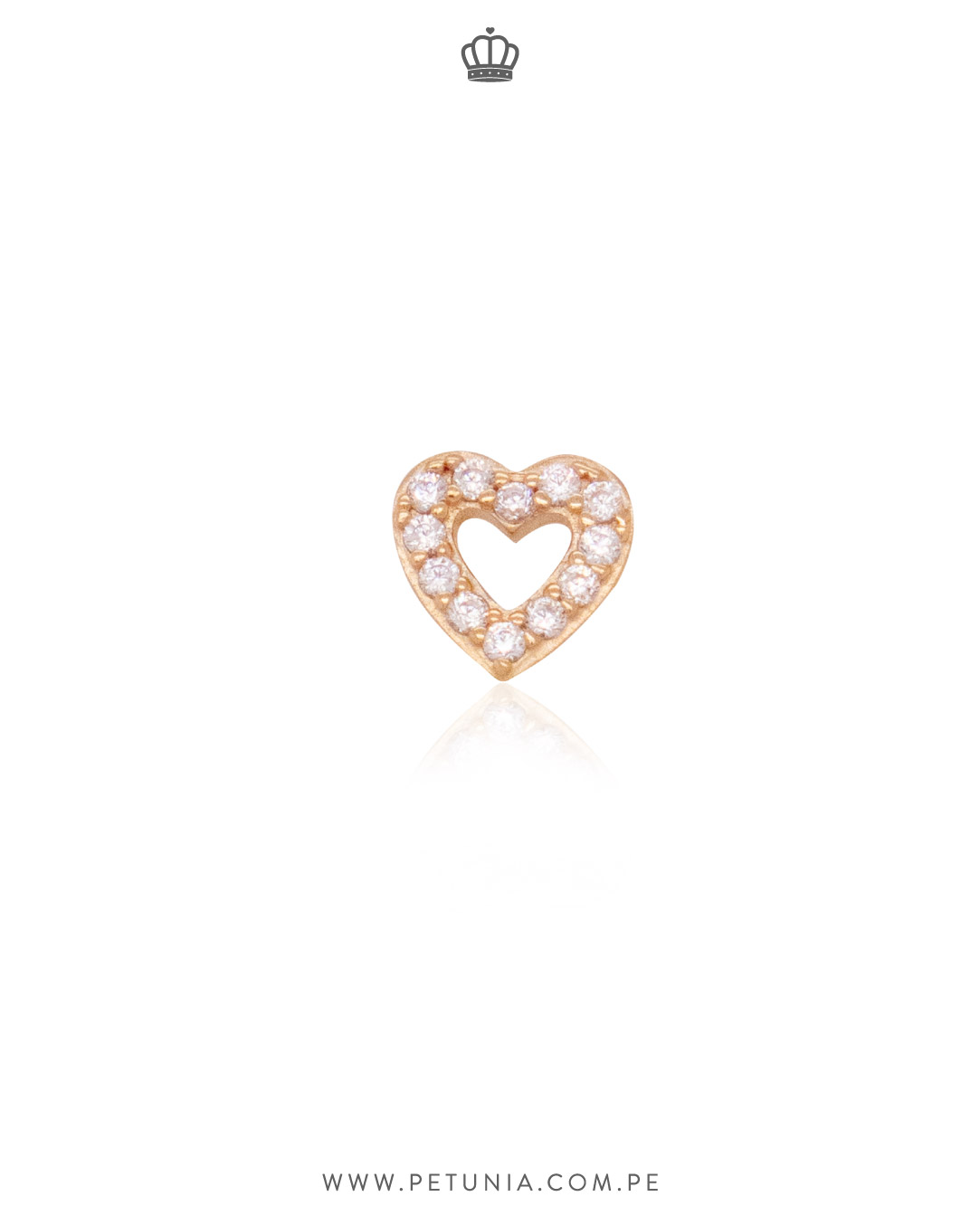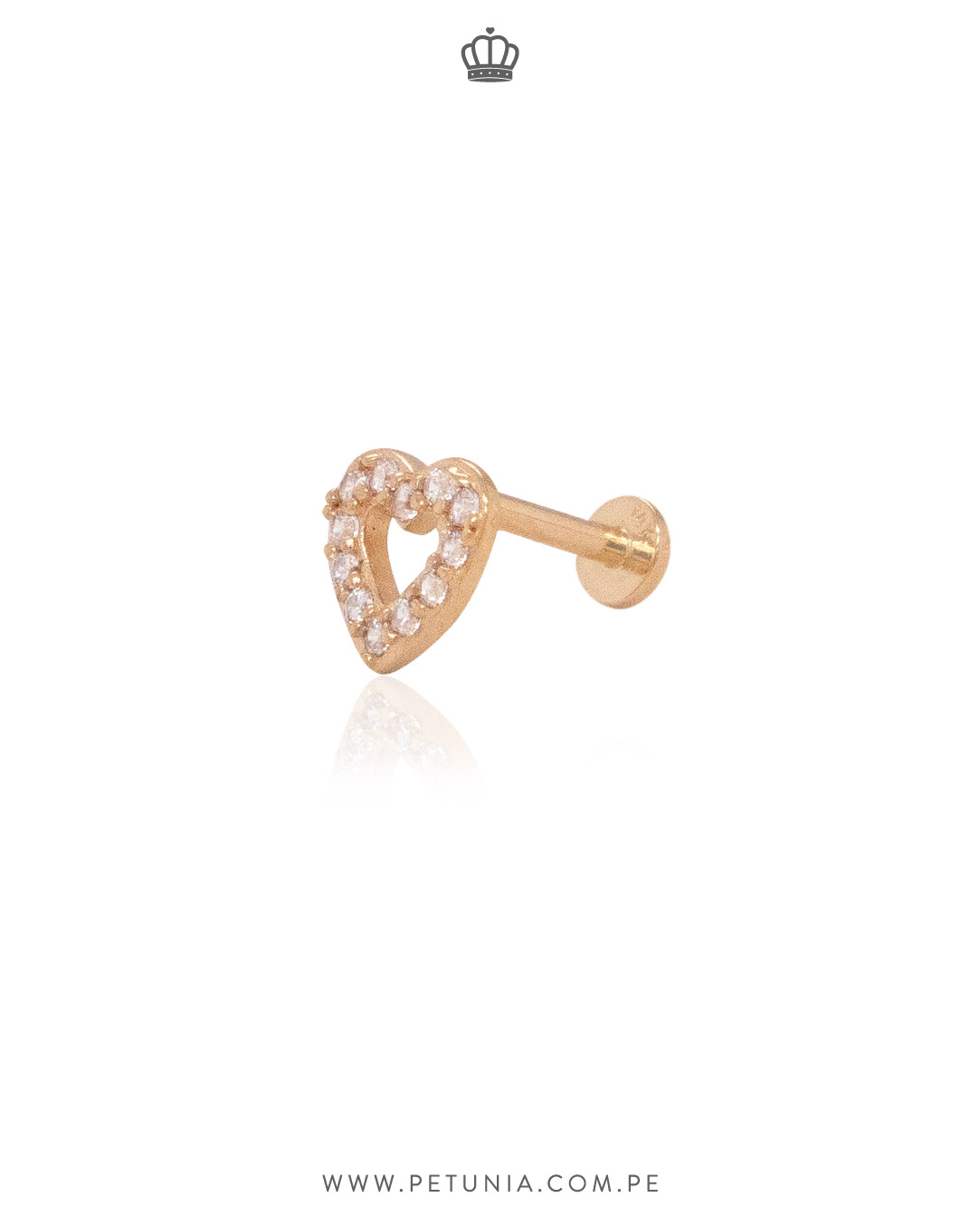 Piercing en oro italiano 14k en forma de corazón calado con incrustaciones de cristales en el contorno y broche flat back (broche plano). El toque de brillo para armar tu ear look con tus piercings favoritos ¡Las combinaciones son infinitas!