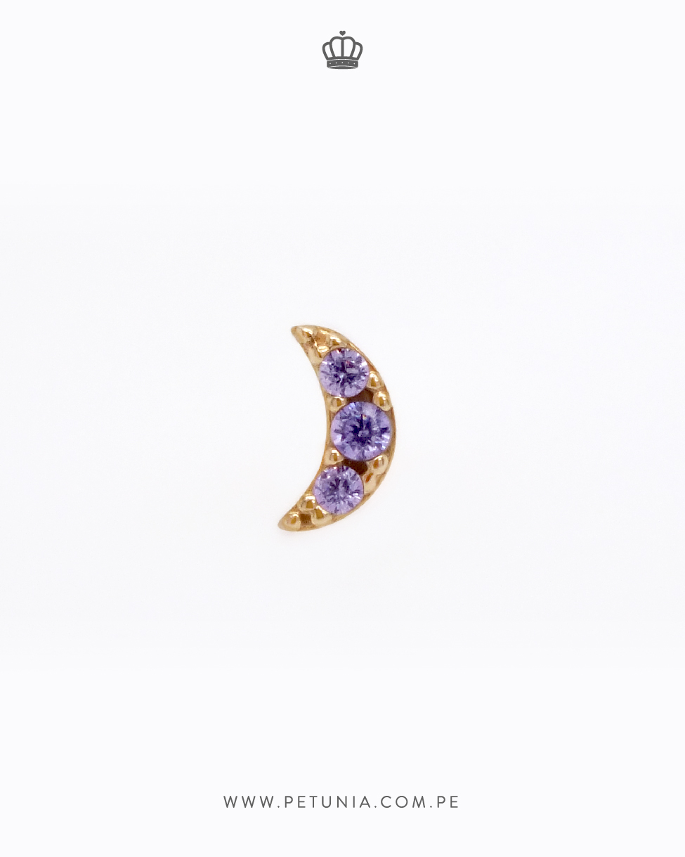 Piercing de oro 14k en forma de luna petit con cristales lilas. Broche enroscable ¡Sus detalles le darán ese toque mágico a tu ear look!