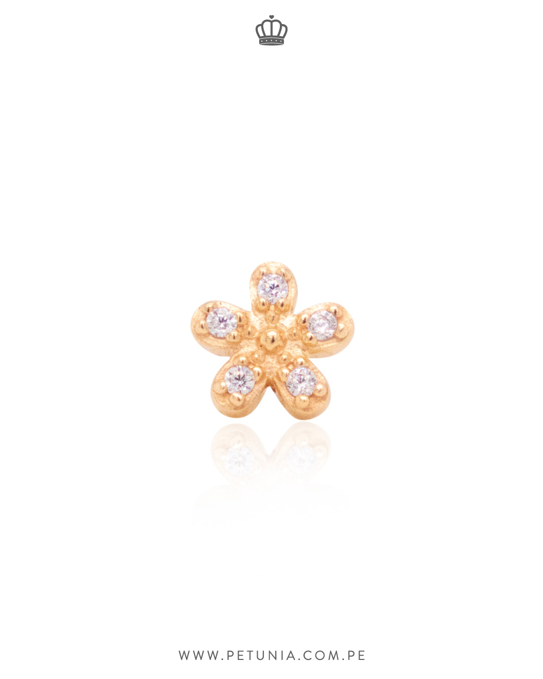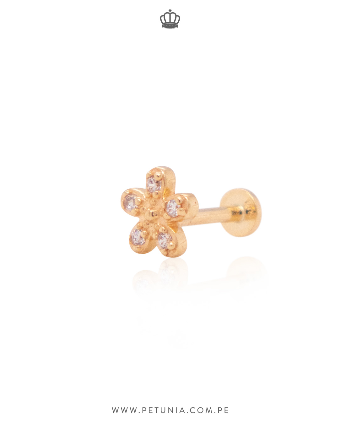 Piercing de oro italiano 14k en forma de flor color blanco. ¡Sus detalles le darán ese toque mágico a tu look! Broche enroscable.