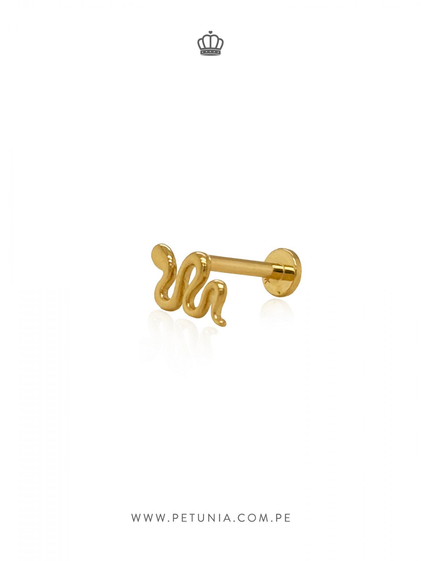 Piercing de oro italiano 14K en forma de serpiente con cristal y broche flat back (broche plano)¡Sus detalles le darán ese toque mágico a tu look!
