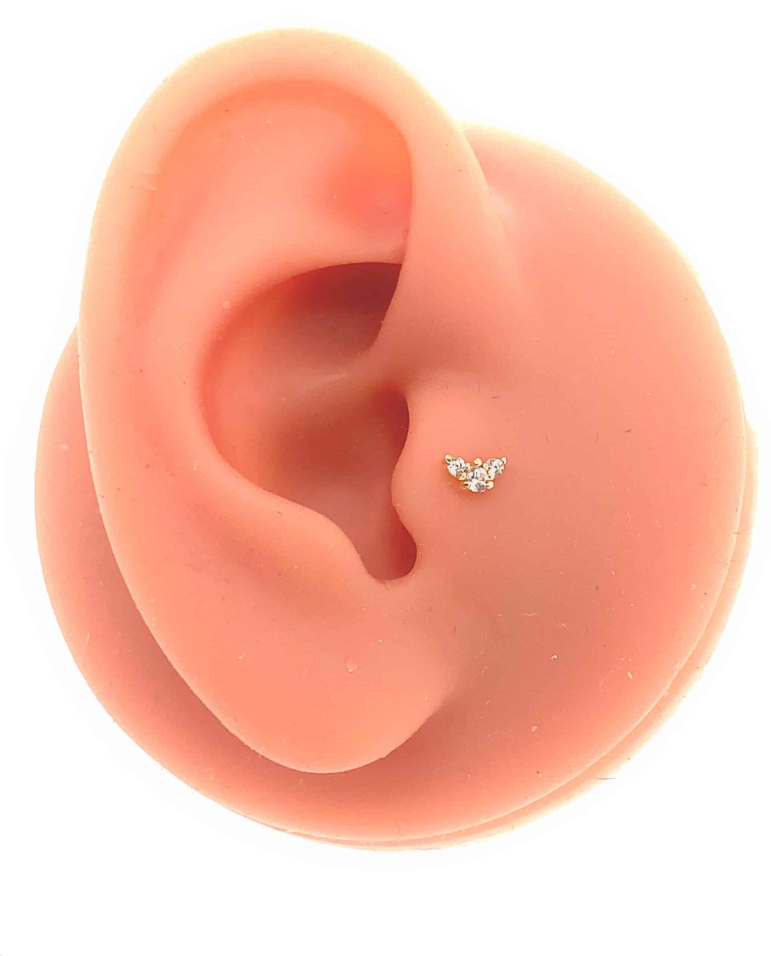 Piercing de oro de 14k con incrustaciones de 3 cristales. Con broche tipo push.