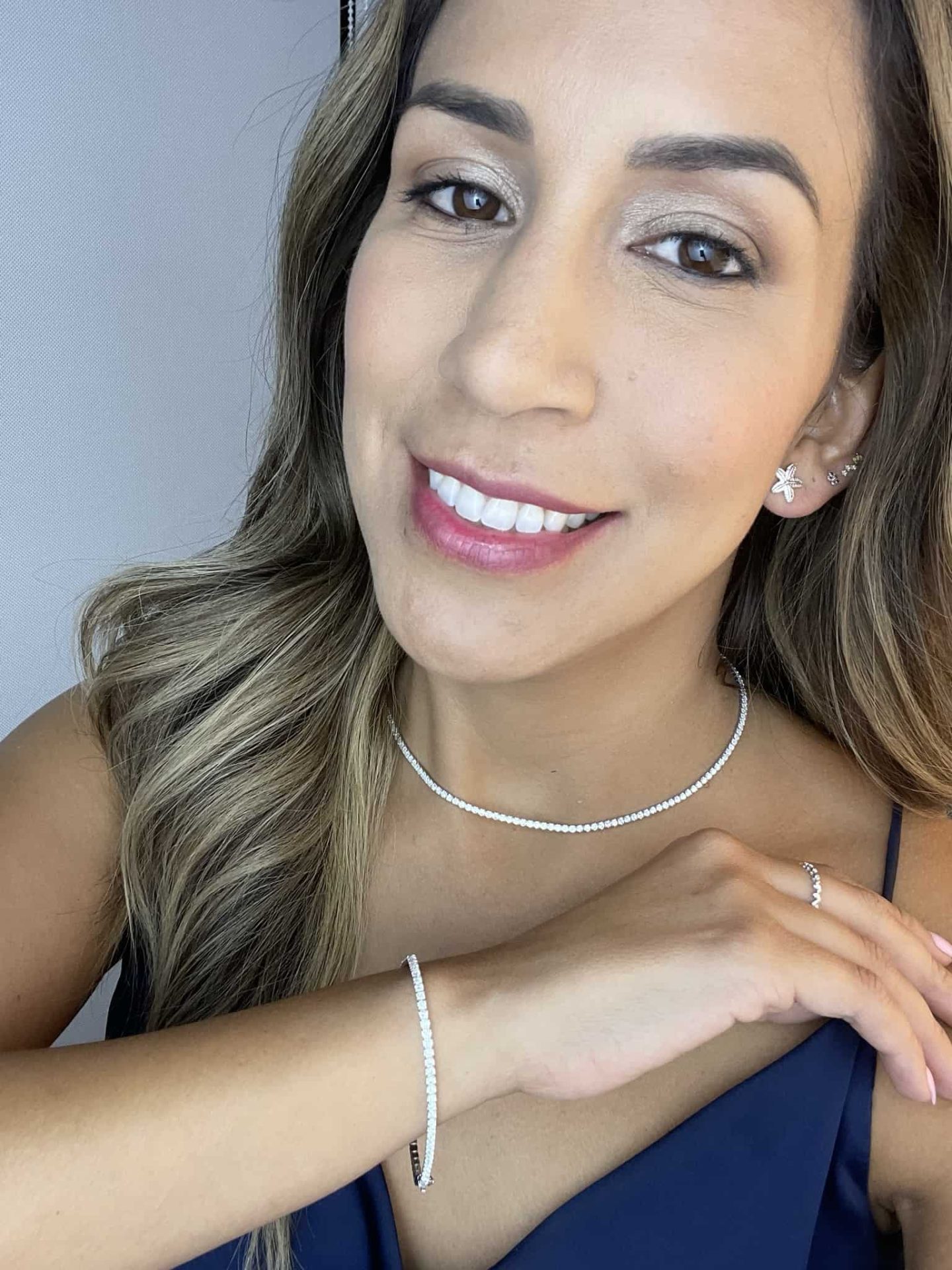 Elegante pulsera de plata 925 con apliques de cristales por todo el contorno y doble broche para mayor seguridad.