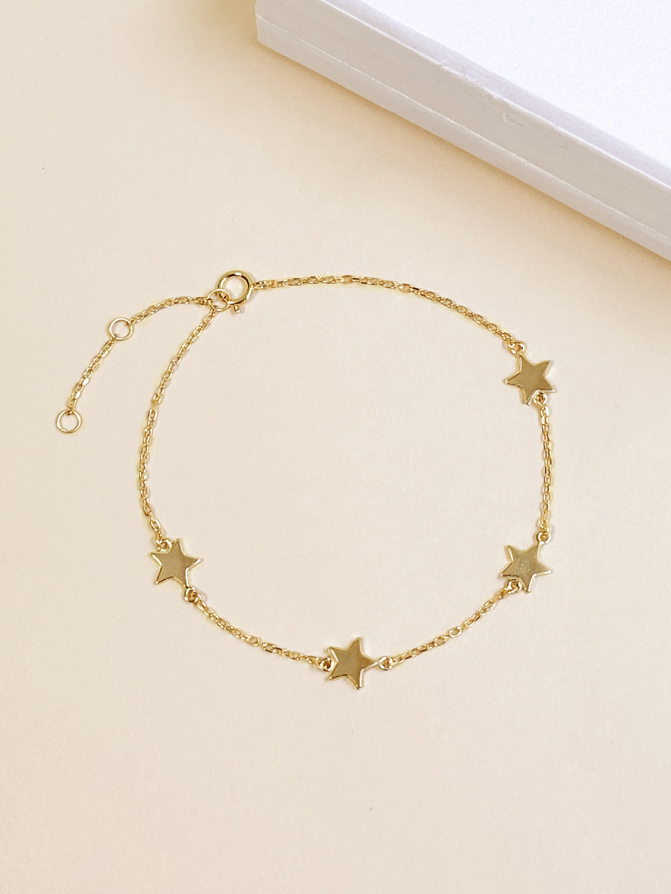 Pulsera de plata 925 con baño de oro con 4 dijes de estrellas. Ideal para complementar tu todos tus looks y combinarlo con otras pulseras.