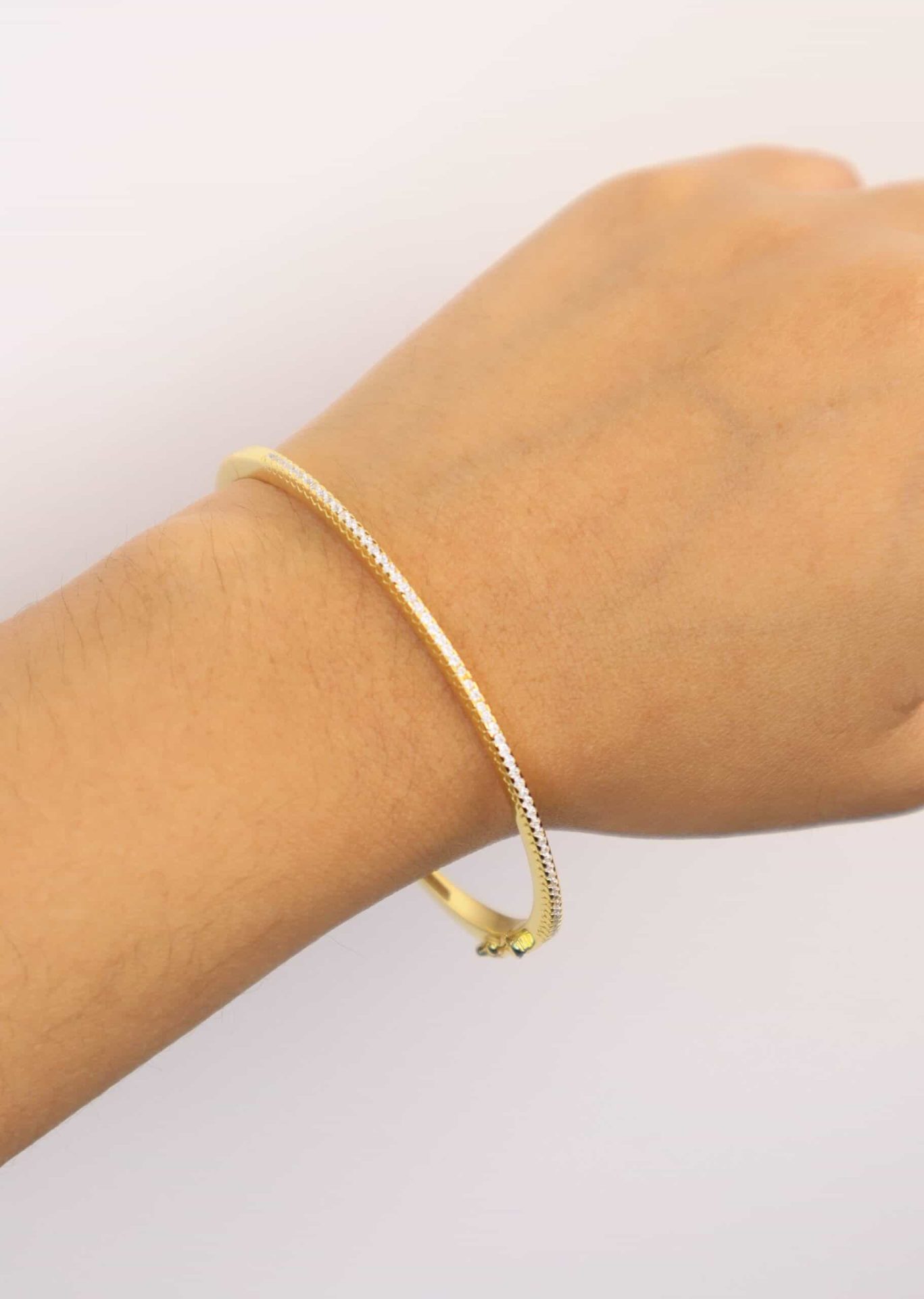 Puñera de plata bañado en oro con cristales incrustados. Tiene doble broche para mayor seguridad, Ideal para un look elegante.